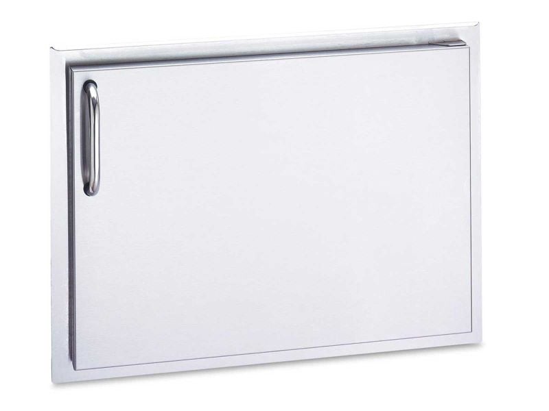 This American Outdoor Grill right hinged single access door features a double walled, solid stainless construction and tubular stainless handles.