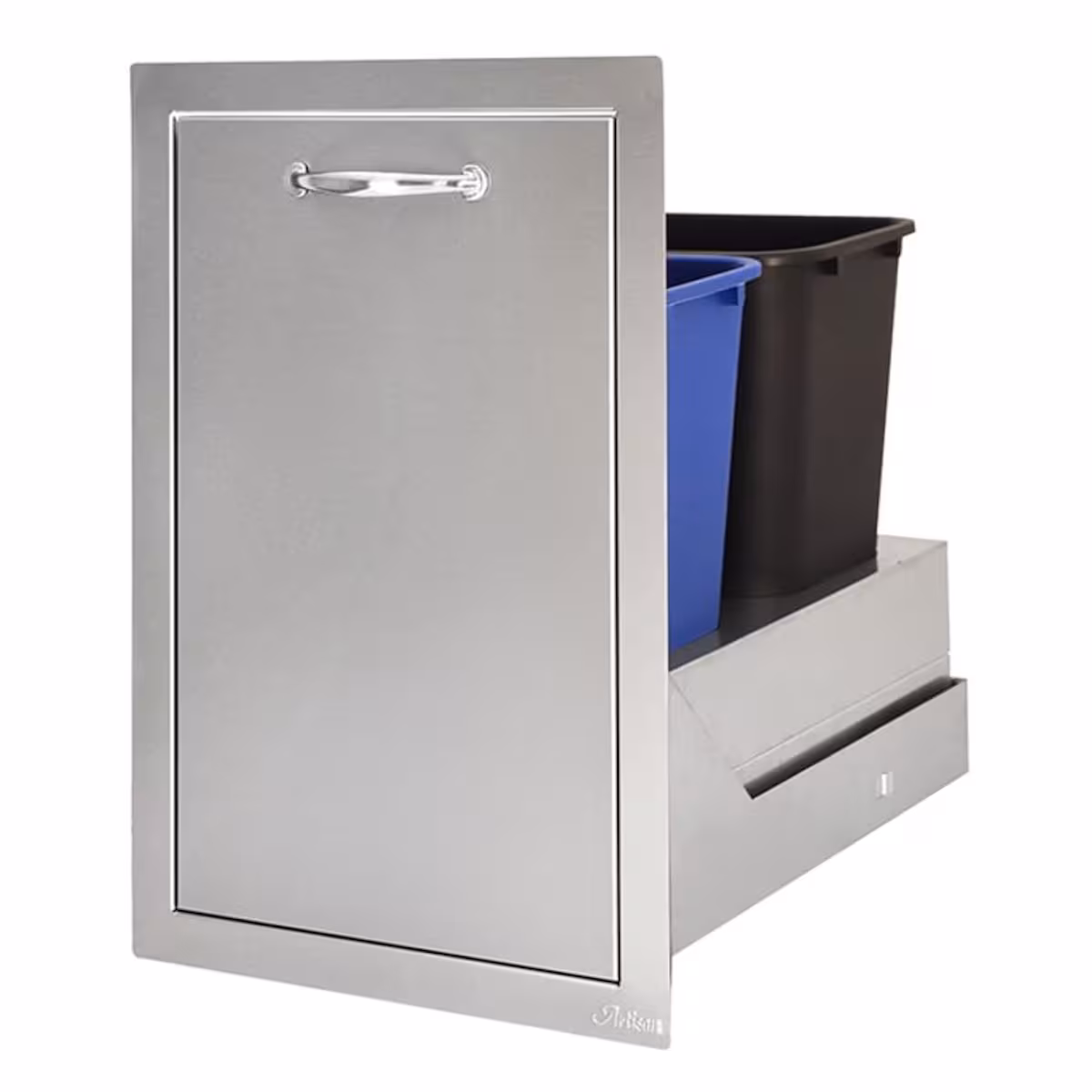 This 20-inch Artisan dual trash center is constructed of 304 stainless steel to ensure long life, easy maintenance, and perfectly match your grill. The trash center features full-length, soft-close, ball bearing slides and holds two standard 10-gallon trash cans (trash cans not included).