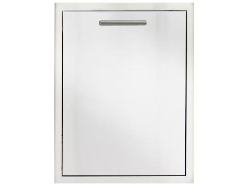 This Blaze double trash and recycle bin features commercial grade 304 stainless steel construction to withstand outdoor elements and a unique completely rounded bevel design that enhances strength and durability. Conveniently hide the trash and recycling bins and gain easy access by pulling the roll out drawer open. This quality outdoor kitchen double trash and recycle drawer includes two 42 quart removable trash bins. Blaze storage drawers are the perfect storage solution for any outdoor kitchen!