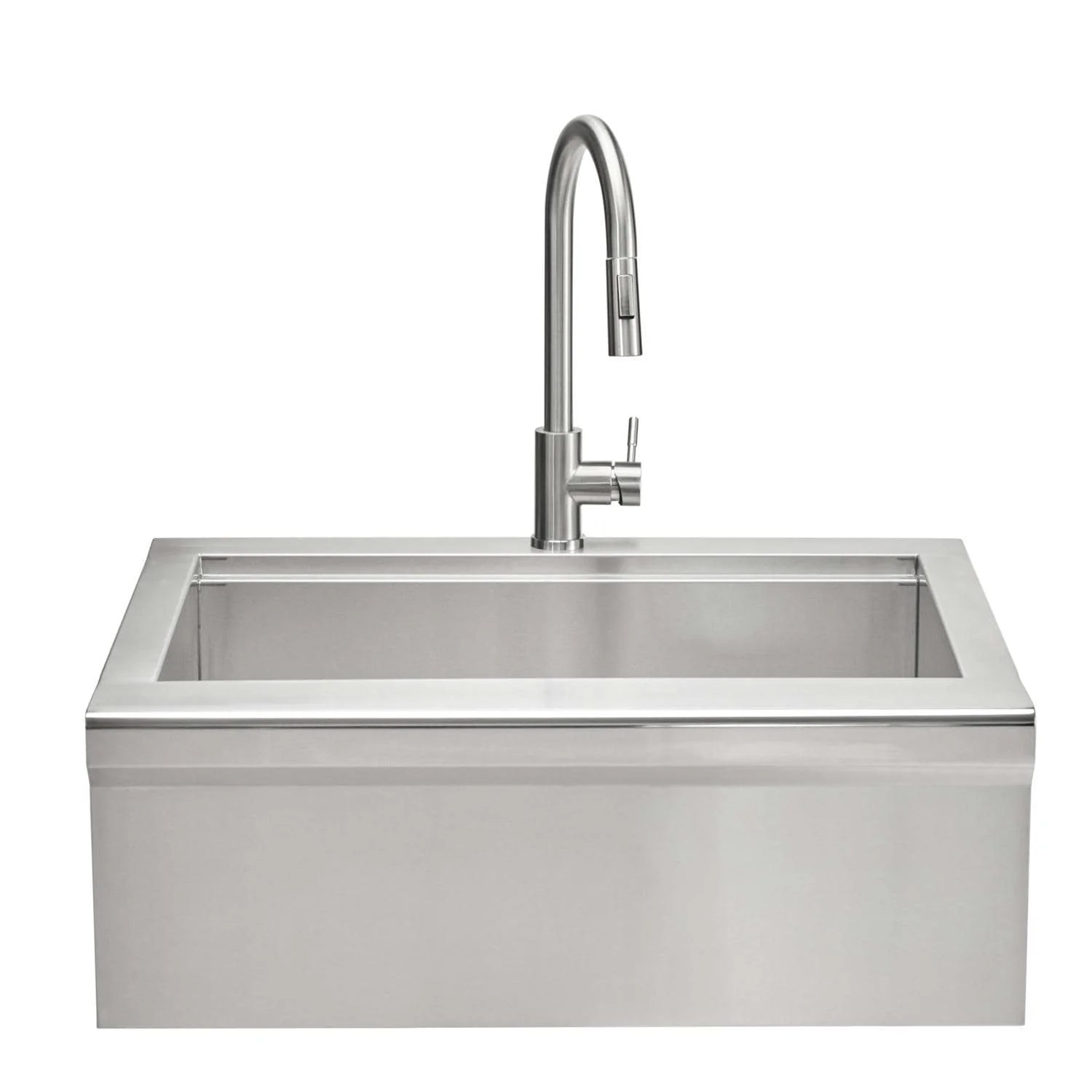The Coyote 30 inch Farmhouse Sink adds a stylish and functional touch to any outdoor kitchen. Its farmhouse apron front design delivers a contemporary look while maintaining practicality. Crafted from premium 304 stainless steel, this sink is built to withstand outdoor elements. Complete with a drain, faucet, strainer, and stainless steel cover, it provides everything needed for efficient outdoor cleaning and prep work.