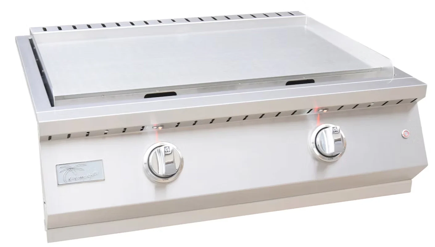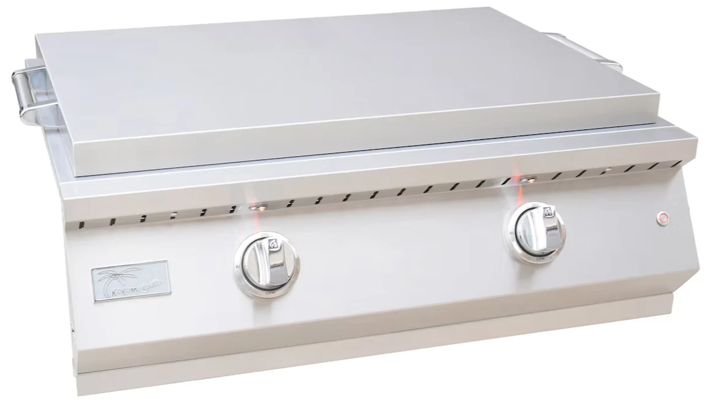 The KoKoMo KO-GRDL30-PRO brings professional flat-top cooking to your outdoor kitchen. Two U-shaped burners deliver a combined 36,000 BTUs for precise zone control, while the full 304 stainless steel construction, illuminated knobs, and included stainless lid elevate both performance and presentation. From high-heat sears to gentle simmers, this built-in griddle is engineered for daily cooking and easy care.