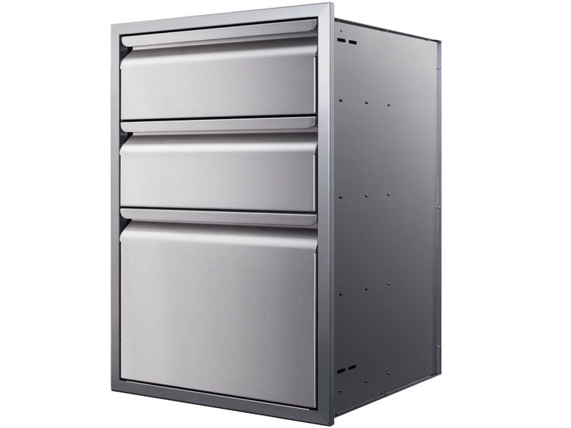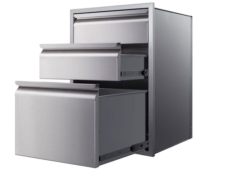 Three stacked drawers provide convenient storage space for your outdoor kitchen