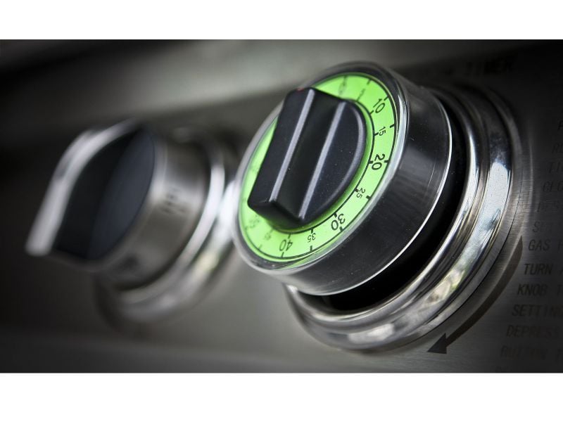FuelStop gas flow timer automatically shuts off gas after one hour, preventing grill from being left on for extended times