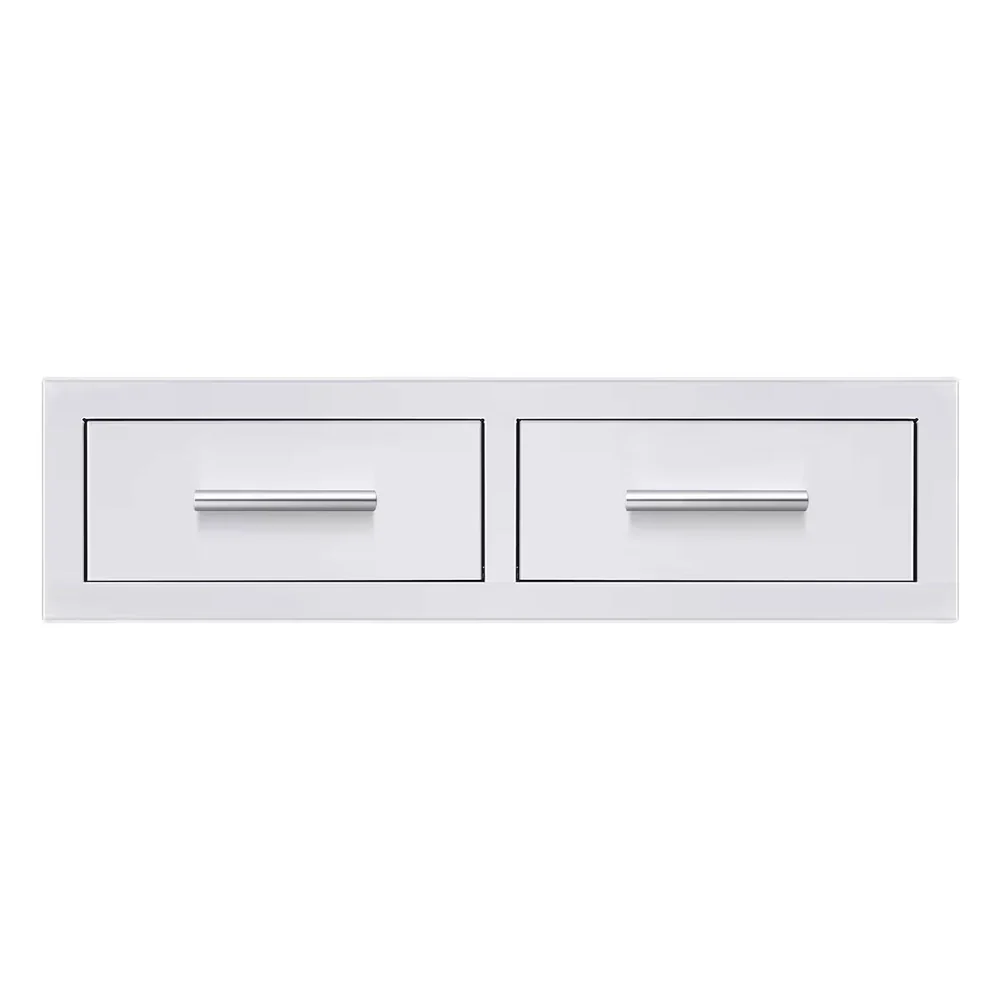 Bring efficiency and function to your outdoor kitchen with Summerset Drawers. With multiple configurations, use our drawers to maximize the space and design of your outdoor space. Built to last, all drawers are manufactured fully enclosed with durable construction for maximum protection from the outdoors. Summersets 32 Inch Double Horizontal Drawer offers #304 stainless steel construction, stainless steel mounting tabs, smooth gliding and soft closing on heavy-duty tracks, #304 Summerset stainless steel solid bar handles, and a Gold Standard Lifetime Warranty.
