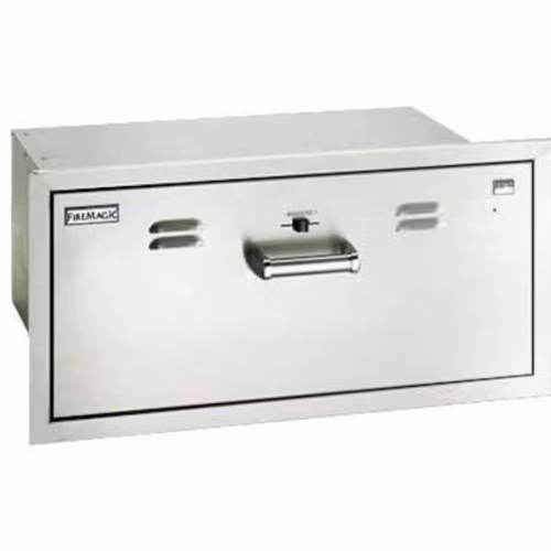 The TrueFlame 36-Inch Warming Drawer is designed for durability and convenience, featuring 304 stainless steel construction that ensures weather resistance and easy cleaning. Fully enclosed and sealed, it maintains food warmth and freshness at temperatures up to 230 degrees. The luxurious soft-close drawer, equipped with heavy-duty full extension tracks, guarantees smooth operation. Perfect for keeping towels warm on chilly nights by the hot tub and pool, this warming drawer is a versatile addition to any outdoor setup.