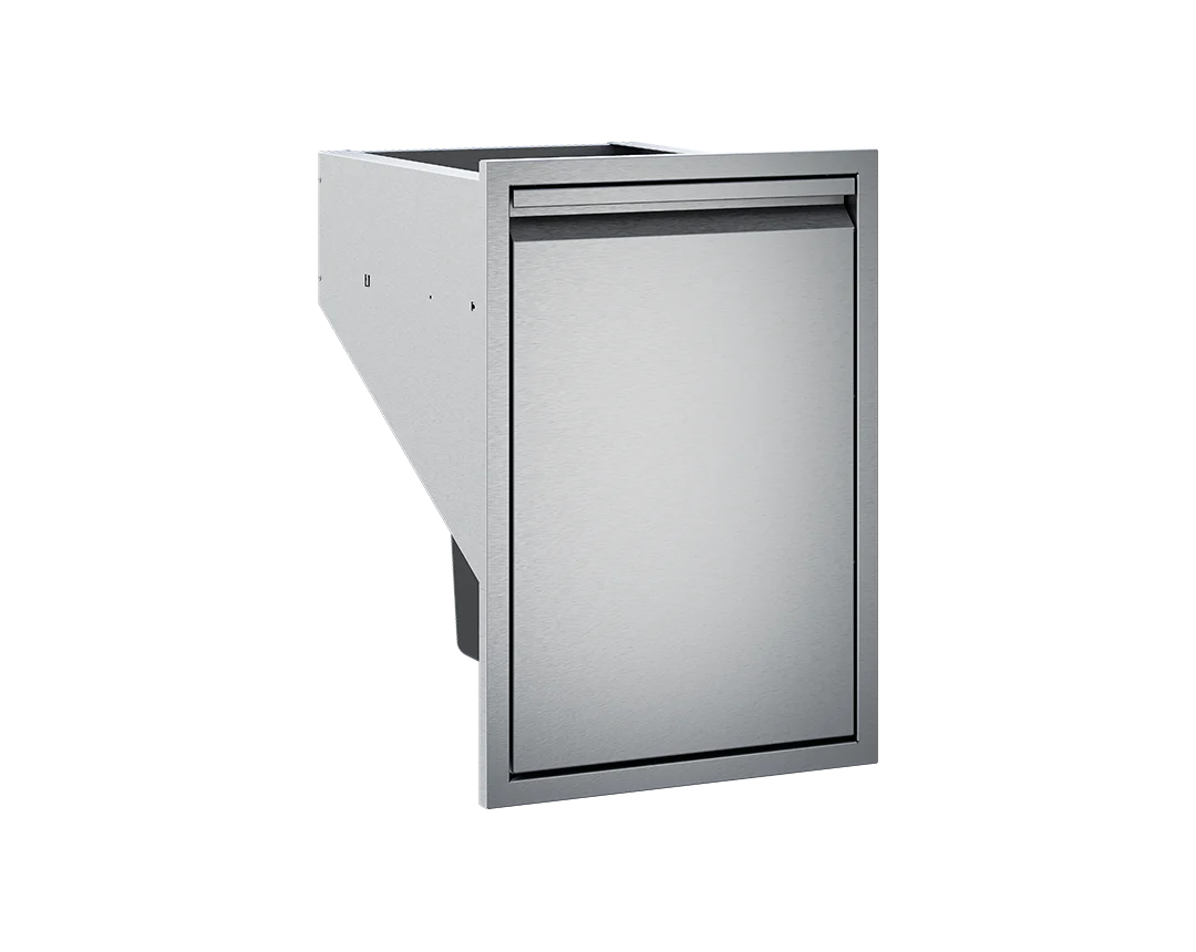 This Twin Eagles double trash and recycle bin features commercial grade 304 stainless steel construction with superior welding and finish; heavy duty 100 lb capacity; full extension, removable drawer glides; one-piece mounting frame for precision alignment; and flush handle with high polished accents. Conveniently hide the trash and recycling bins and gain easy access by pulling the roll out drawer open. Includes two removable large capacity trash bins. Twin Eagles products are designed and manufactured in the USA with pride.